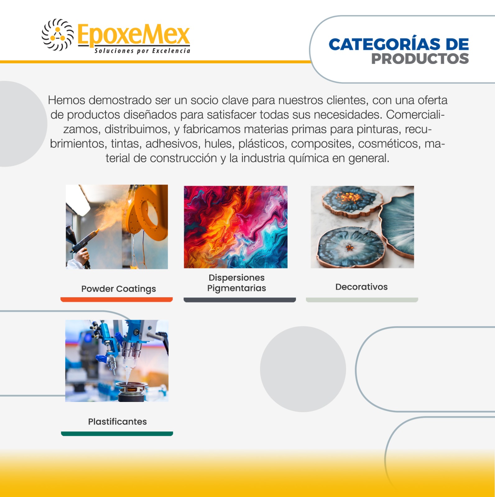 En 1994 iniciamos con nuestra planta productiva y desde 1997 nuestro negocio de distribución con KUKDO CHEMICAL. Nos dedicamos a la comercialización, distribución y producción de materia prima para: pinturas y recubrimientos, tintas, adhesivos, construcción, hule, plásticos, composites, cosméticos y muchas más