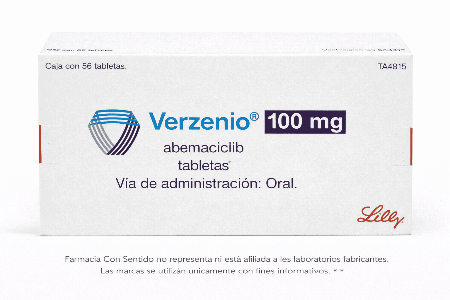 El abemaciclib es un medicamento de uso altamente especializado que forma parte del manejo de enfermedades oncológicas, particularmente en tratamientos hormonodependientes, siempre bajo indicación y supervisión médica especializada. Su uso se establece dentro de esquemas terapéuticos definidos de manera individual, de acuerdo con la condición clínica del paciente y la valoración del médico tratante. En Farmacia Con Sentido trabajamos con un firme compromiso por ofrecer medicamentos de origen trazable, cuidando la calidad del producto y acompañando de manera cercana y responsable a cada paciente y familia durante todo el proceso.
