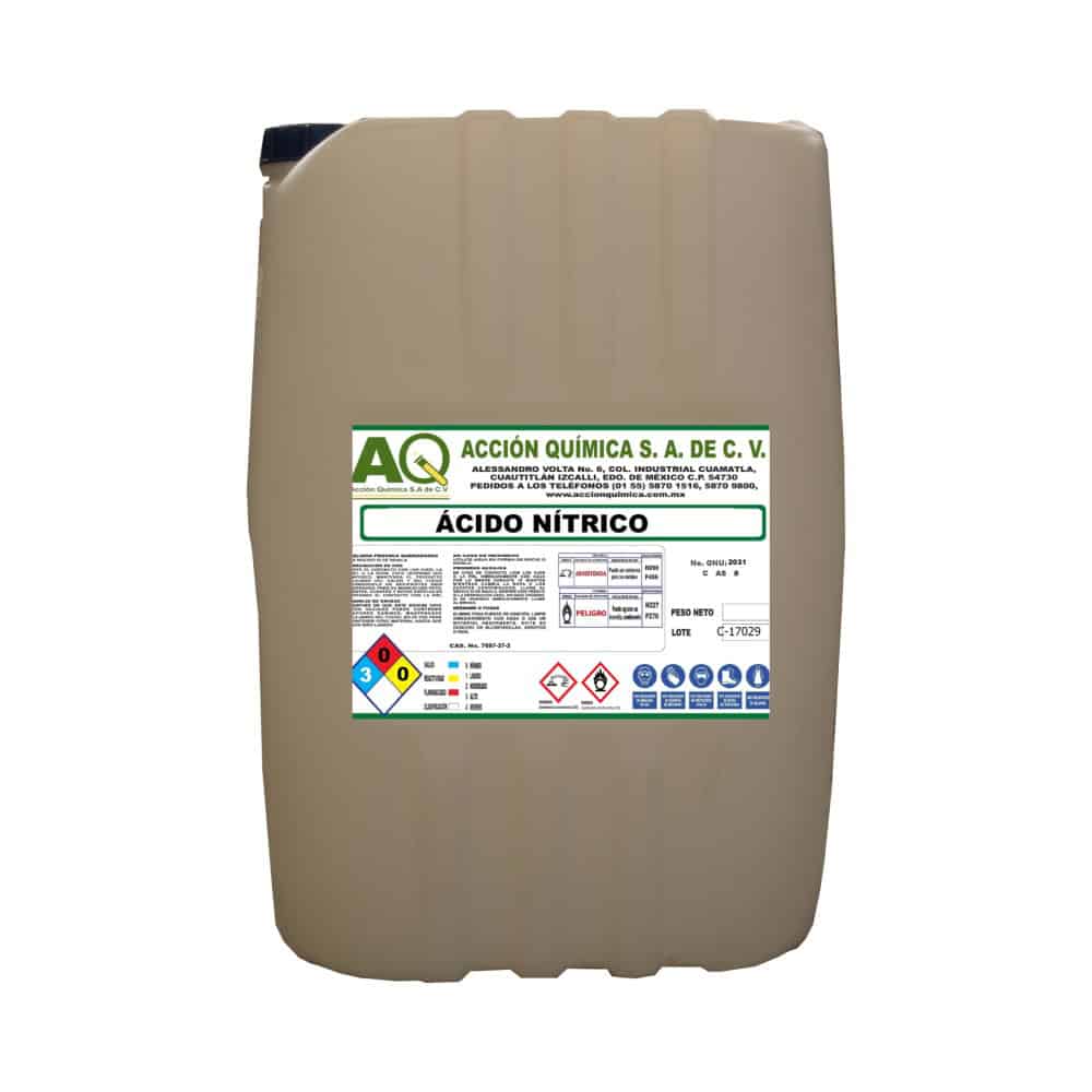 Compuesto químico corrosivo que puede ocasionar graves quemaduras en los seres vivos. Se utiliza como reactivo de laboratorio y para fabricar explosivos como TNT, así como fertilizantes como el nitrato de amonio. Tiene usos adicionales en metalurgia y en refinado, ya que reacciona con la mayoría de los metales y en la síntesis química.