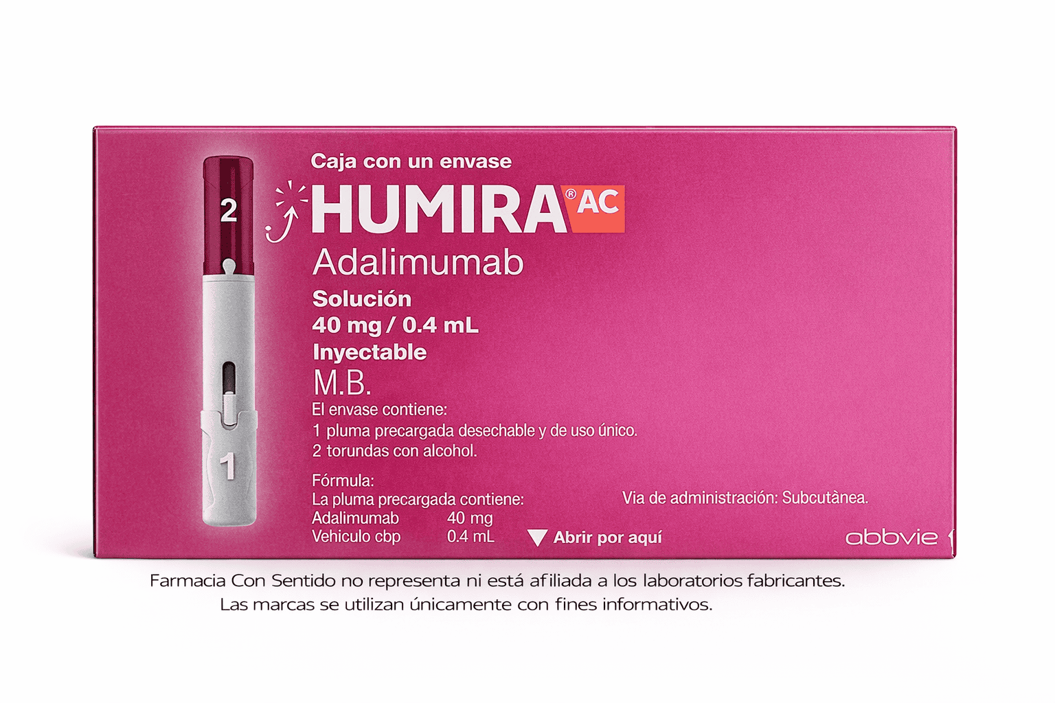 El adalimumab es un medicamento de uso altamente especializado que forma parte del manejo de enfermedades autoinmunes e inflamatorias, siempre bajo indicación y supervisión médica especializada. Su uso se establece dentro de esquemas terapéuticos definidos de manera individual, de acuerdo con la condición clínica del paciente y la valoración del médico tratante. En Farmacia Con Sentido trabajamos con un firme compromiso por ofrecer medicamentos de origen trazable, cuidando la calidad del producto y acompañando de manera cercana y responsable a cada paciente y familia durante todo el proceso.