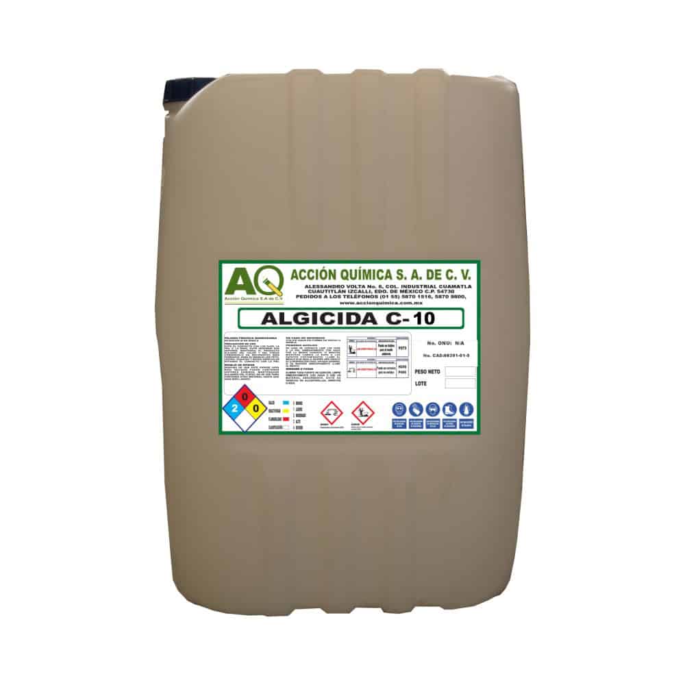 Compuesto orgánico de amonio cuaternario destinado a prevenir la formación de algas y de esta forma proporcionar transparencia al agua de las piscinas.