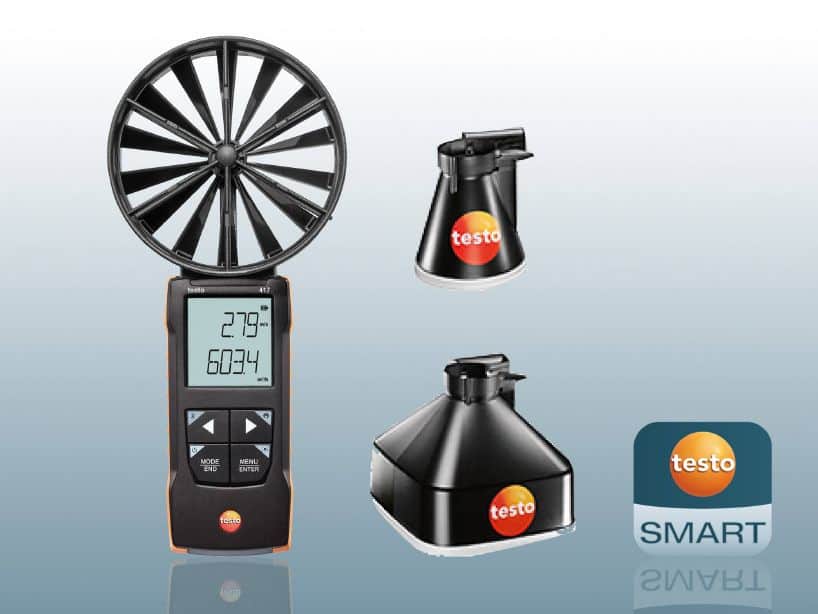 Tecnología de medición profesional en formato pequeño: el compacto anemómetro de molinete con manejo a través de teléfono inteligente mide rápida y fiablemente el caudal volumétrico, la velocidad del aire y la temperatura en la salida de aire. La aplicación testo Smart brinda una lectura cómoda de los valores medidos, así como funciones adicionales inteligentes.