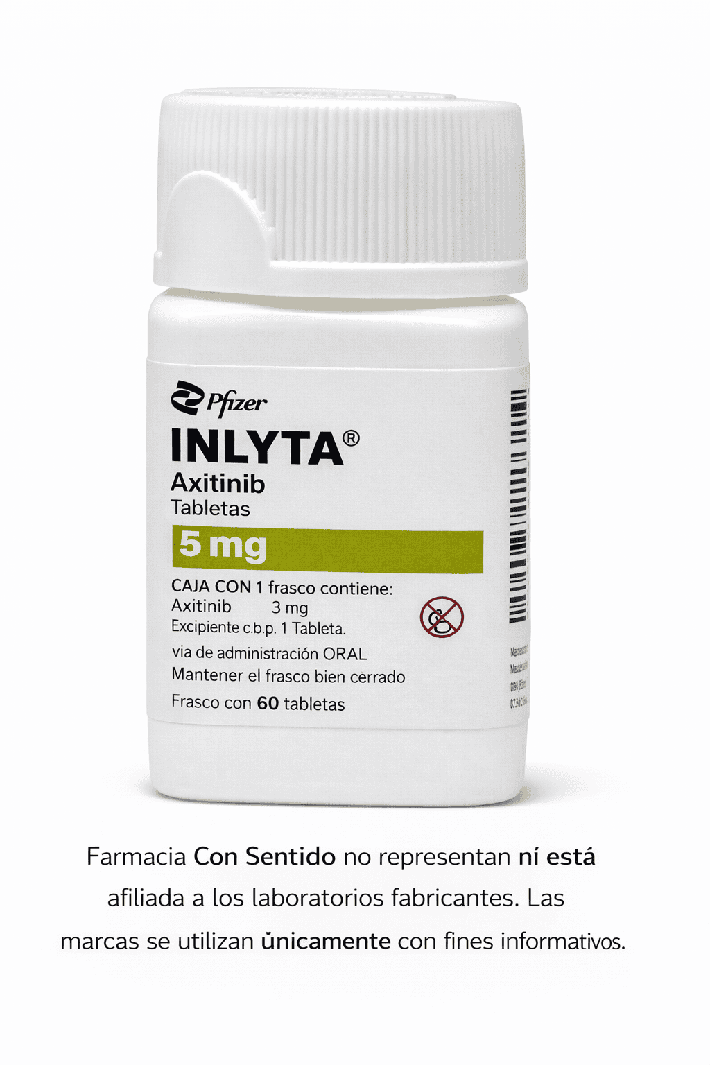 El axitinib es un medicamento de uso altamente especializado que forma parte del manejo de enfermedades oncológicas, siempre bajo indicación y supervisión médica especializada. Su uso se integra dentro de esquemas terapéuticos definidos de manera individual, conforme a la condición clínica del paciente y la valoración del médico tratante. En Farmacia Con Sentido trabajamos con un firme compromiso por ofrecer medicamentos de origen trazable, cuidando la calidad del producto y acompañando de manera cercana y responsable a cada paciente y familia durante todo el proceso, comprendiendo la importancia de la continuidad terapéutica.