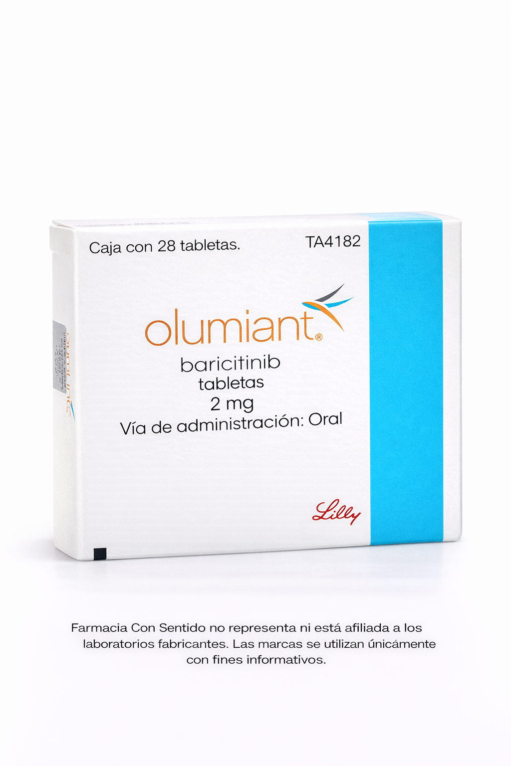 El baricitinib es un medicamento de uso altamente especializado que forma parte del manejo de enfermedades inflamatorias y autoinmunes, siempre bajo indicación y supervisión médica especializada. Su uso se establece dentro de esquemas terapéuticos definidos de manera individual, conforme a la condición clínica del paciente y la valoración del médico tratante. En Farmacia Con Sentido trabajamos con un firme compromiso por ofrecer medicamentos de origen trazable, cuidando la calidad del producto y acompañando de manera cercana y responsable a cada paciente y familia durante todo el proceso.
