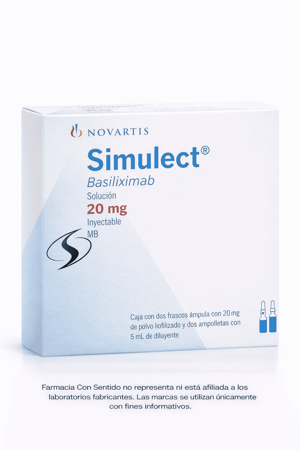 El basiliximab es un medicamento biotecnológico de alta especialidad utilizado dentro de esquemas terapéuticos definidos para pacientes que requieren manejo inmunológico especializado, particularmente en contextos de trasplante de órganos, siempre bajo estricta indicación médica. Forma parte de protocolos hospitalarios cuidadosamente establecidos y su administración se realiza en entornos clínicos controlados, conforme a la valoración individual del paciente y el criterio del equipo médico tratante. En Farmacia Con Sentido trabajamos con un firme compromiso por ofrecer medicamentos con condiciones adecuadas de conservación, tratándose de terapias que requieren cadena de frío.
