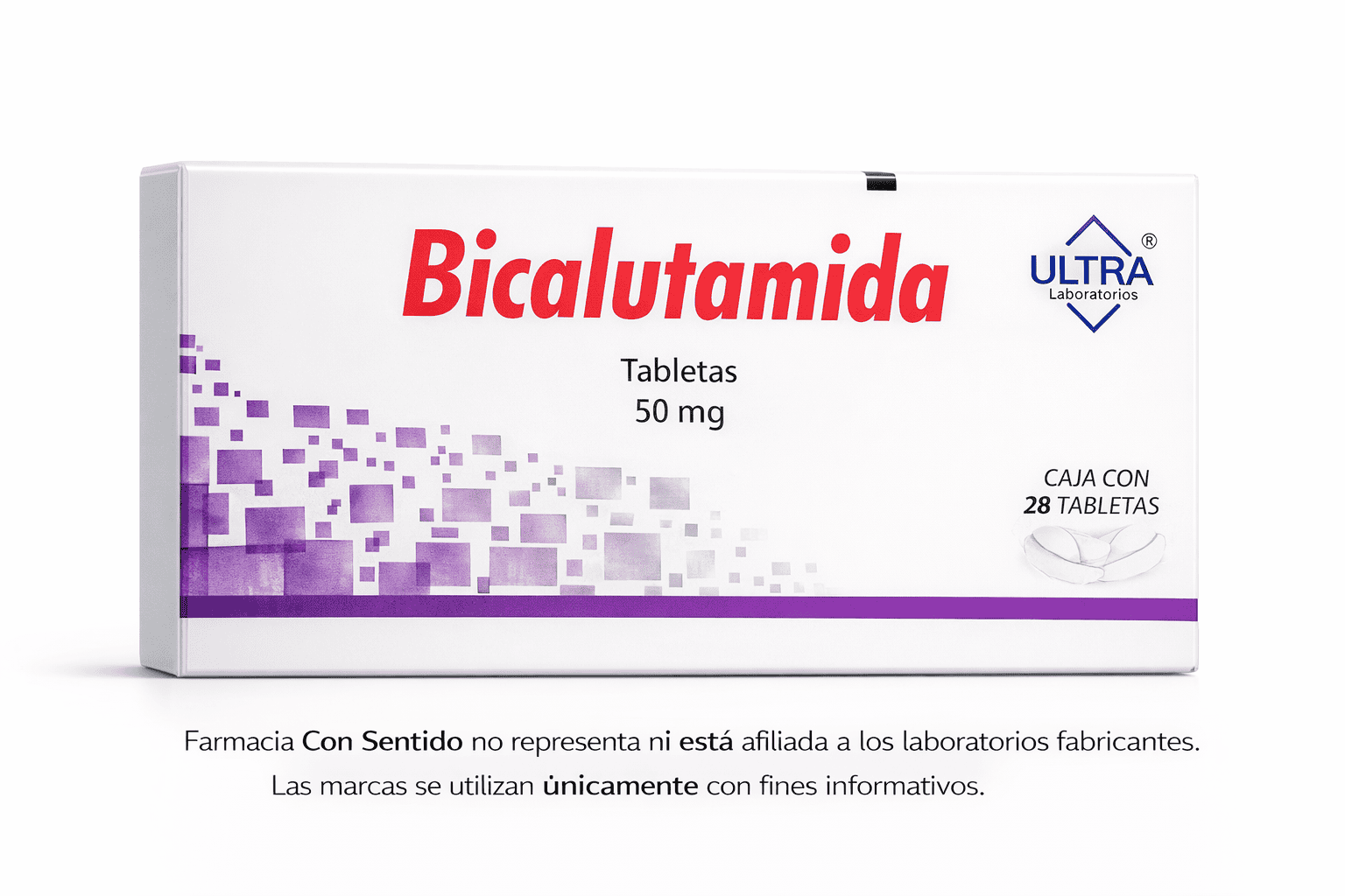 Bicalutamida (genérico de Casodex) 50 mg Caja con 28 tabletas