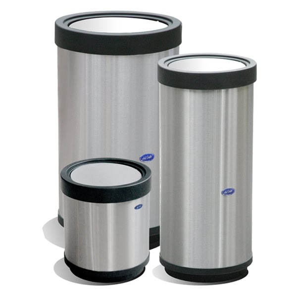 Bote jumbo de acero inoxidable pulido. -Tapa desmontable de plástico rígido con balancín de acero inoxidable pulido. --Fondo de plástico de alta resistencia. -Cuenta con cinturón interno para sujetar la bolsa y evitar que quede expuesta. -Capacidad 150 lts. -Medidas 49x80 cm. -Acabado de acero liso o punzonado. -Producto reciclable gracias a sus materiales y sistemas de fabricación. -Producto accesible a personas discapacitadas.