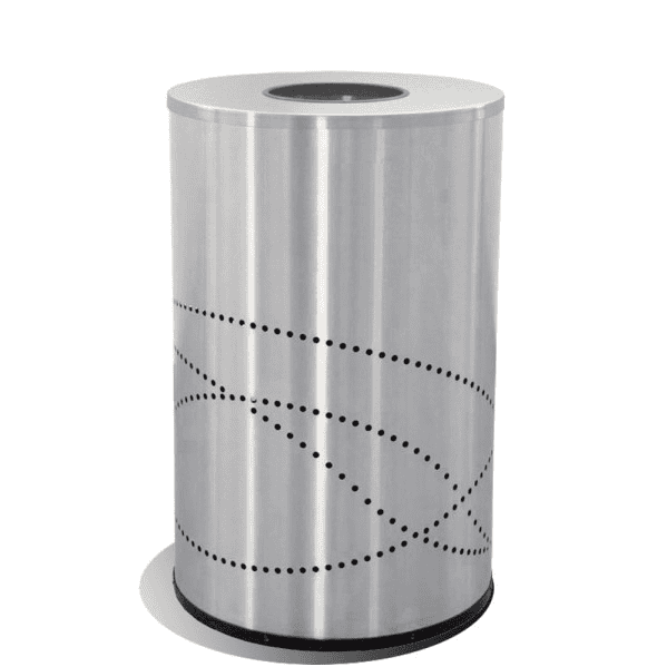 Bote jumbo de acero inoxidable pulido con tapa perforada. -Cuenta con práctico cinturón interno para sujetar la bolsa de basura y evitar que quede expuesta. -Tapa desmontable para acceder fácil y rápidamente al interior del contenedor. -Cuerpo con diseño liso o punzonado. -Fondo de plástico de alta resistencia, para un mejor cuidado de la pieza y del piso ya que evita los rayones y también las manchas en el piso en caso de estar húmedo. -Medidas: 49x80cm -Capacidad 150 lt. -Producto reciclable gracias a sus materiales y sistemas de fabricación. -Producto accesible a personas discapacitadas.