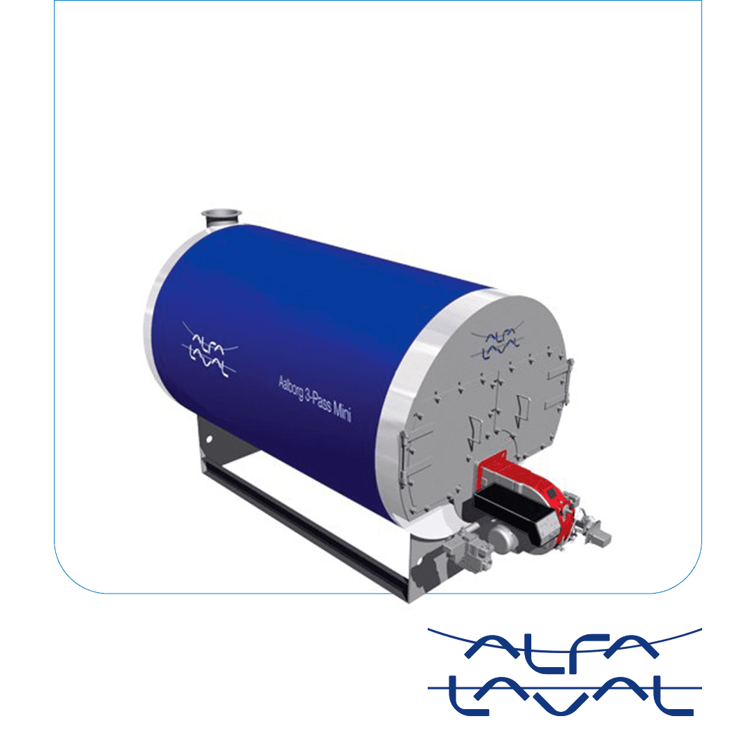 La caldera Alfa Laval Aalborg Mini 3-Pasos es una caldera industrial que opera a gas o combustibles líquidos con una capacidad de entre 0.5-2.5 ton/hr de vapor y un diseño el cual permite manejar presiones hasta 21barg, un beneficio de las calderas industriales Alfa Laval Aplicaciones para quemadores monoblock duales.