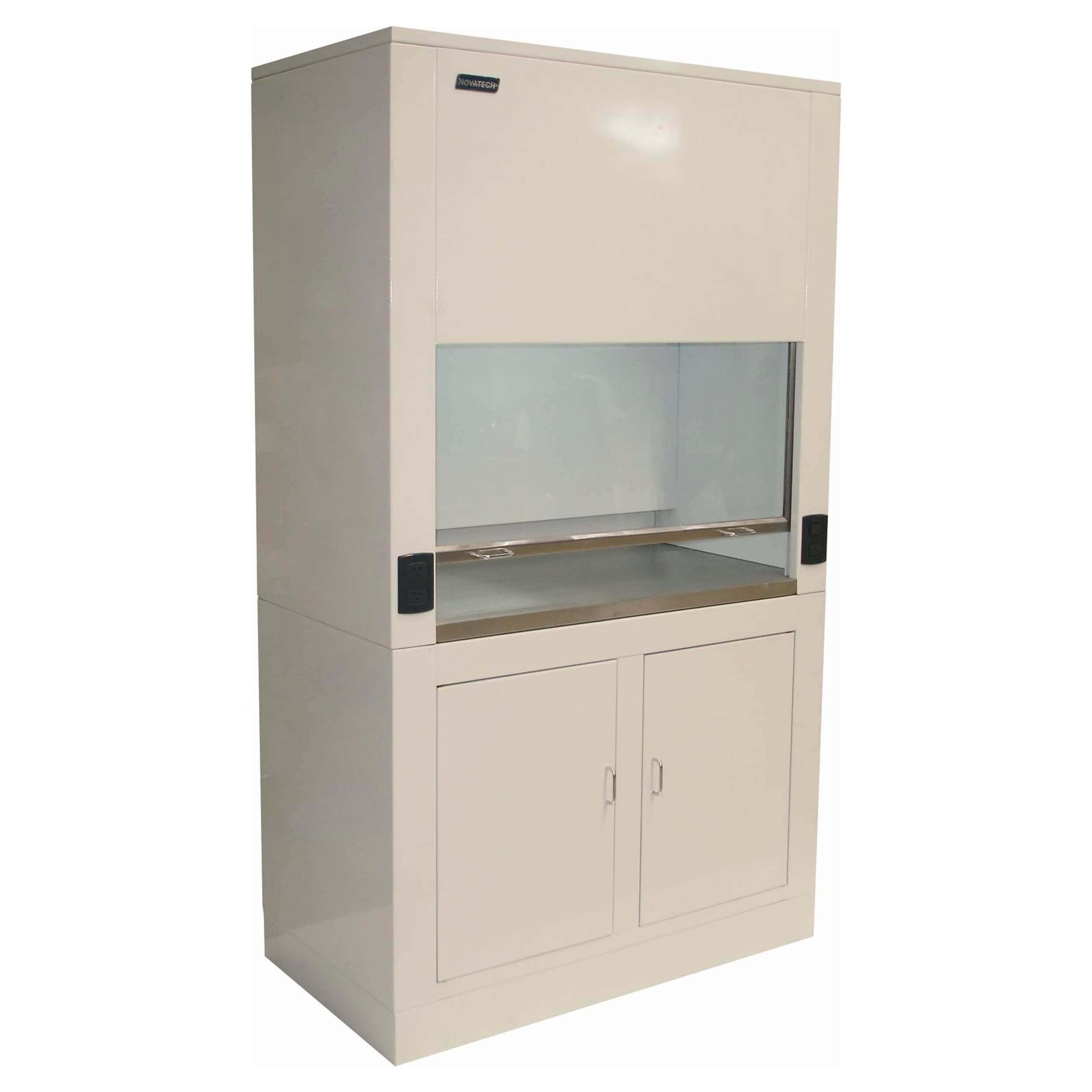 Fabricada en lámina galvanizada fosfatizada calibre # 20, terminado esmaltado, en pintura en polvo epoxy poliéster de aplicación electroestática endurecida al horno con área de trabajo en acero inoxidable calibre 18 tipo 304. Incluye: ventana tipo guillotina (con vidrio de seguridad inastillable) de 6 mm de espesor, 1 lámpara de seguridad a prueba de explosión, 1 contacto doble polarizado, 1 sistema de extracción completo extractor heliocentrifugo fabricado en polipropileno, ductería: 2 m de ducto de pvc, 1 codo de pvc y 1 cople de pvc accesorios incluidos: 1 tarja completa en acero inoxidable, 1 llave de agua tipo cuello de ganso cromada 2 válvulas de importación para gas ó vacío montadas en torretas fabricadas en bronce con acabado cromo de alta dureza. 1 base o gabinete fabricado en lámina galvanizada fosfatizada calibre # 20, terminado esmaltado, en pintura en polvo epoxy poliéster de aplicación electroestática endurecida al horno con 3 puertas abatibles y jaladeras ocultas de plástico abs color negro. Medidas externas 220 cm de frente x 208cm de alto x 65 cm fondo. Características eléctricas: 120 volts / 60 hz.