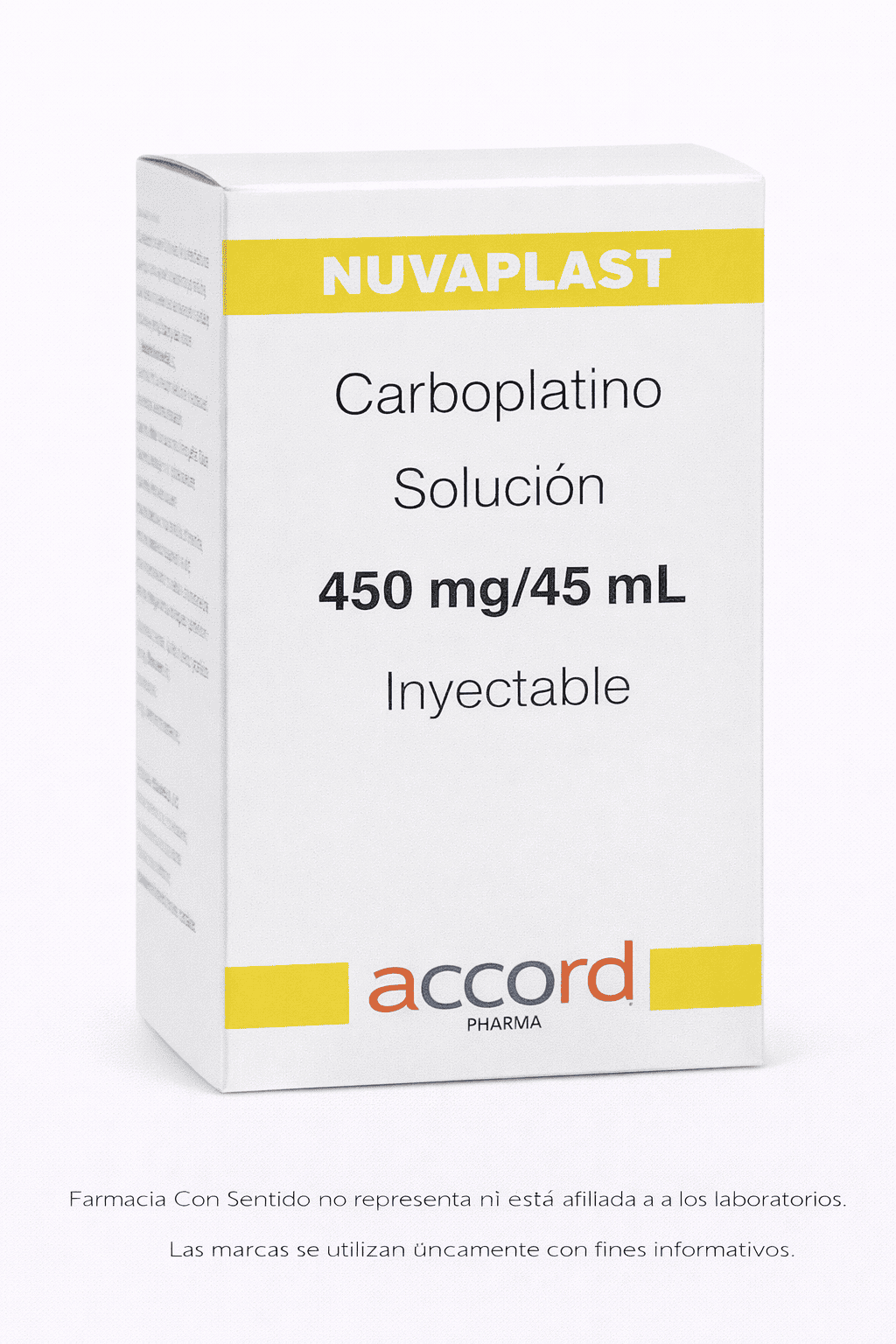 El carboplatino es un medicamento de uso altamente especializado que forma parte del manejo de tratamientos oncológicos, siempre bajo indicación y supervisión médica especializada. Su administración se integra dentro de esquemas terapéuticos definidos de manera individual, conforme a la condición clínica del paciente y la valoración del equipo médico tratante. En Farmacia Con Sentido trabajamos con un firme compromiso por ofrecer medicamentos de origen trazable, cuidando la calidad del producto y acompañando de manera cercana y responsable a cada paciente y familia durante todo el proceso, comprendiendo la importancia de la continuidad terapéutica en tratamientos de alta especialidad.