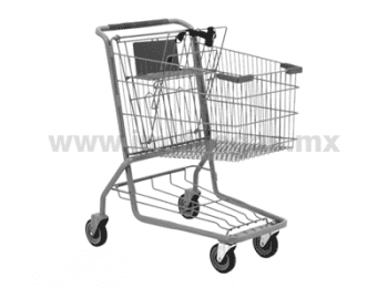 CARRO MARCA UNARCO U068-TN Encestado 17 cm, volumen en canastilla 98 y 168 litros en total, frente 062 x fondo 080 x alto 096 cm, acabado epóxico color gris.