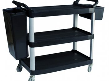Carro de servicio de 3 niveles. Fabricado en polipropileno con postes de aluminio que dan total rigidez a su estructura, permitiéndole brindar años de servicio. Contiene dos pequeños contenedores removibles de 30 y 10 lts. Muy útil en restaurantes para transportar vajilla sucia ó presentar postres y pasteles, en oficinas para servicio de café ó en cualquier tipo de negocio para transportar variedad de objetos.