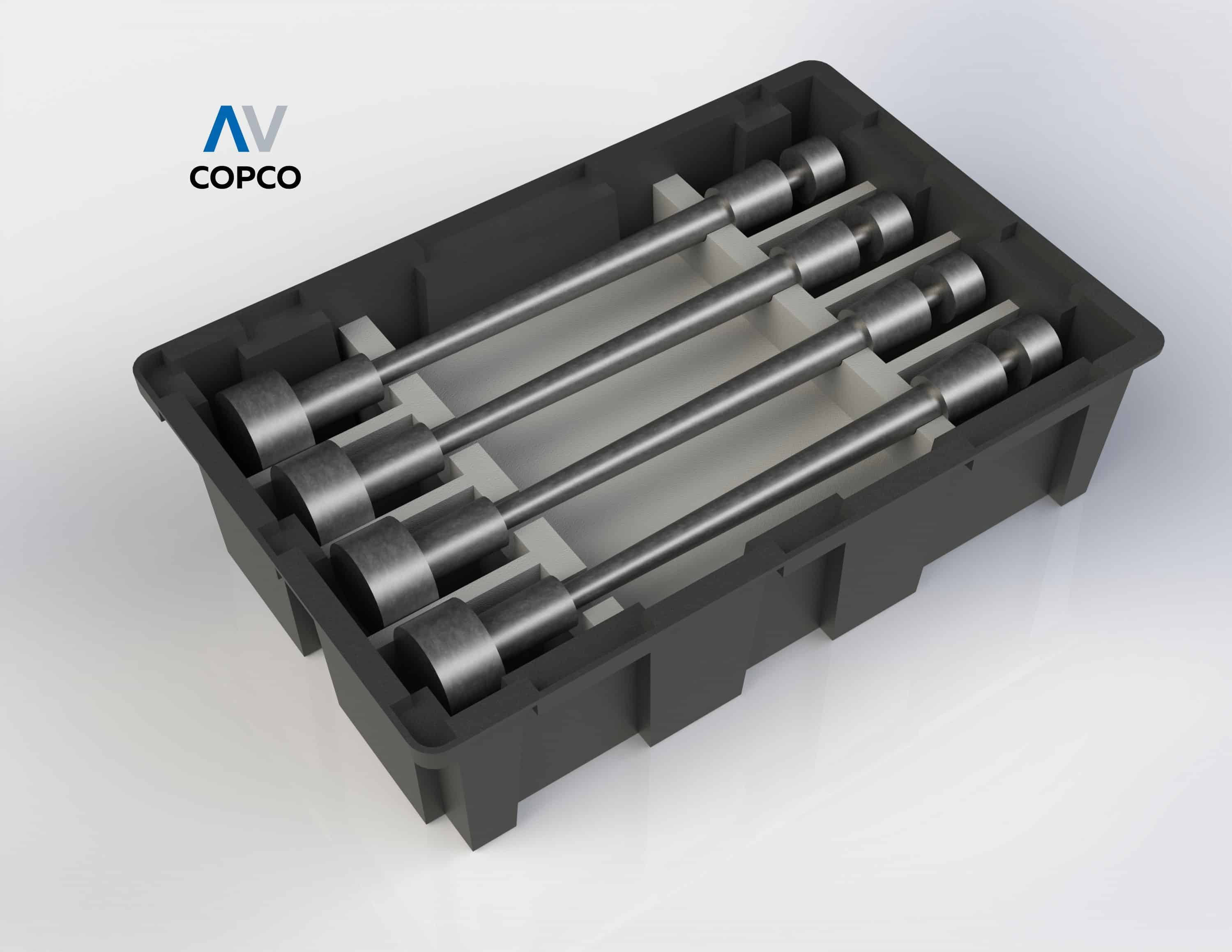 Están diseñadas a medida para mantener las piezas en su lugar a través de ranuras. Las características resistentes y retornables los convierte en una solución económica y práctica para realizar envíos largos y preservar la integridad de las piezas.