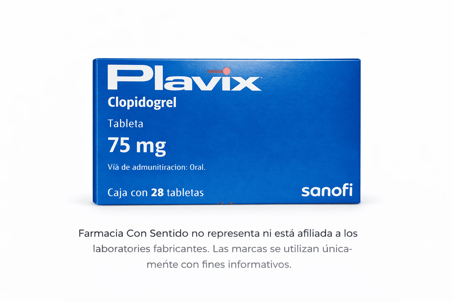 El clopidogrel es un medicamento utilizado dentro de esquemas terapéuticos cardiovasculares específicos, siempre bajo indicación y supervisión médica especializada. Su uso forma parte de tratamientos definidos por el médico tratante, considerando el diagnóstico, antecedentes clínicos y condición particular del paciente. Requiere seguimiento médico periódico y control clínico conforme a lineamientos profesionales. En Farmacia Con Sentido mantenemos un firme compromiso con la calidad y trazabilidad de cada medicamento, brindando acompañamiento cercano, profesional y respetuoso durante todo el proceso de cotización y coordinación de entrega.