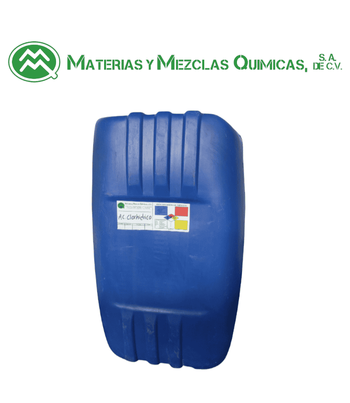 Descripción: Es corrosivo y ácido. Se emplea comúnmente como reactivo químico y se trata de un ácido fuerte que se disocia completamente en disolución acuosa. Usos y aplicaciones: tratamiento de aguas industriales, potabilización de agua, fabricación de productos de limpieza, elaboración de cerveza, elaboración de fertilizantes.