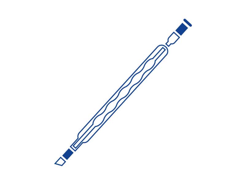 Condensador allihn (rosario), fabricado en vidrio borosilicato DIN 3.3, con juntas cónicas esmeriladas, la inferior con punta de goteo de 500MM.