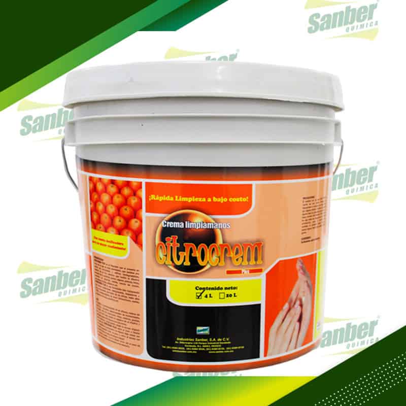 CITROCREM PLUS es un poderoso limpiador en forma de un gel de baja consistencia, que contiene además de una mezcla de surfactantes y aditivos biodegradables, un fino abrasivo que facilita una efectiva remoción de suciedad, grasas, aceites, algunas pinturas, creosota, productos de alquitrán, adhesivos, marcas de crayón y lápices, etc. Todo resto de estos materiales indeseables desaparece rápida y fácilmente sin afectar la piel, textiles u otros materiales sobre los que se utilice. El empleo de un gel suave de este tipo, para manos; el que además no requiere de agua para llevar a cabo su labor de limpieza, resulta particularmente ventajoso para la eliminación de suciedad seca y sólida tal como cemento, masilla, etc. sin provocar abrasión alguna sobre la piel.