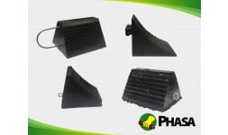 Estas cuñas colocadas adelante o atrás de un vehículo estacionado, los inmoviliza perfectamente impidiendo accidentes por deslizamiento de trailers o camiones. El uso de estas cuñas aumenta la seguridad en maniobras de carga y descarga de vehículos o en vehículos estacionados en terreno pendiente o resbaladizo.