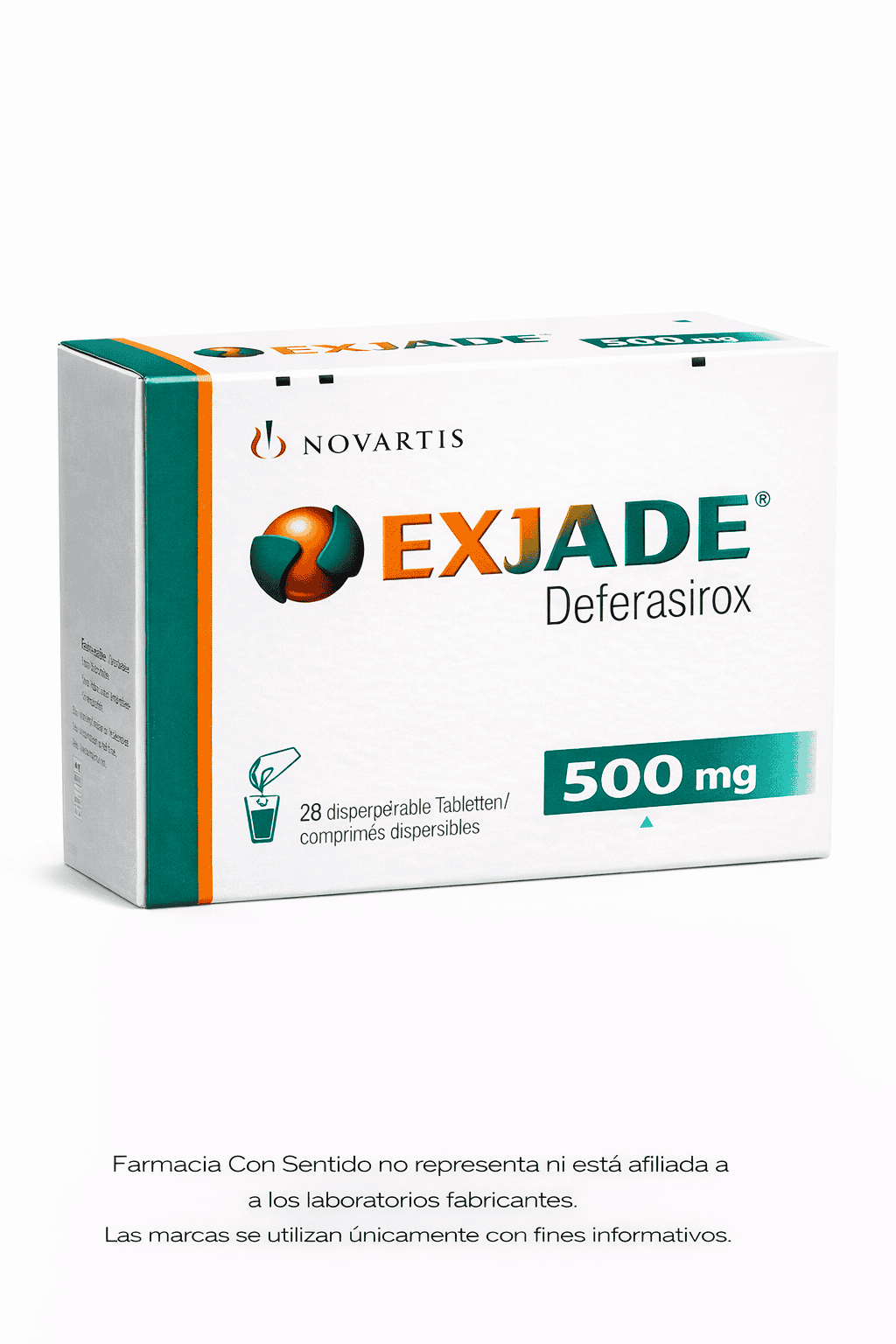 El deferasirox es un medicamento de alta especialidad utilizado dentro de esquemas terapéuticos para el manejo de condiciones asociadas a sobrecarga de hierro, siempre bajo indicación y supervisión médica especializada. Su uso se define conforme a la valoración clínica individual realizada por el médico tratante, considerando diagnóstico, antecedentes y parámetros de laboratorio. En Farmacia Con Sentido mantenemos un firme compromiso con la calidad y trazabilidad de cada medicamento, brindando acompañamiento cercano, profesional y respetuoso durante todo el proceso de cotización y coordinación de entrega.