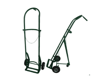 -Carro portacilindro 2052 -Carro esmaltado para cilindro M60 de 1700 lts, tipo Q -Color verde -Mango antiderrapante -El cilindro se asegura con una cadena -Con ganchillo sujetador de cánula -Ruedas de goma -Este carrito permite al paciente desplazar el cilindro de manera cómoda y segura a cualquier lugar