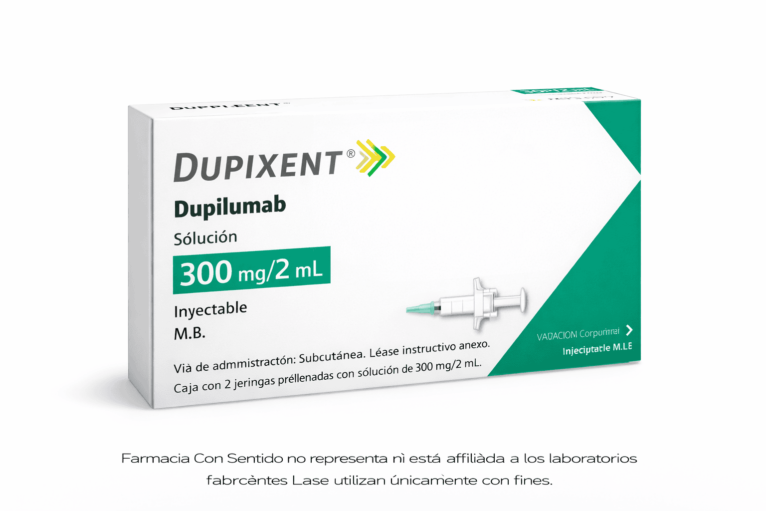 El dupilumab es un medicamento biotecnológico de alta especialidad utilizado dentro de esquemas terapéuticos para enfermedades inflamatorias de origen inmunológico, siempre bajo indicación y supervisión médica especializada. Su uso forma parte de protocolos individualizados definidos por el médico tratante, considerando el diagnóstico, severidad de la enfermedad y respuesta terapéutica del paciente. Requiere seguimiento médico periódico y valoración clínica continua. En Farmacia Con Sentido mantenemos un firme compromiso con la calidad y trazabilidad de cada medicamento, brindando acompañamiento cercano, profesional y respetuoso durante todo el proceso de cotización y coordinación de entrega