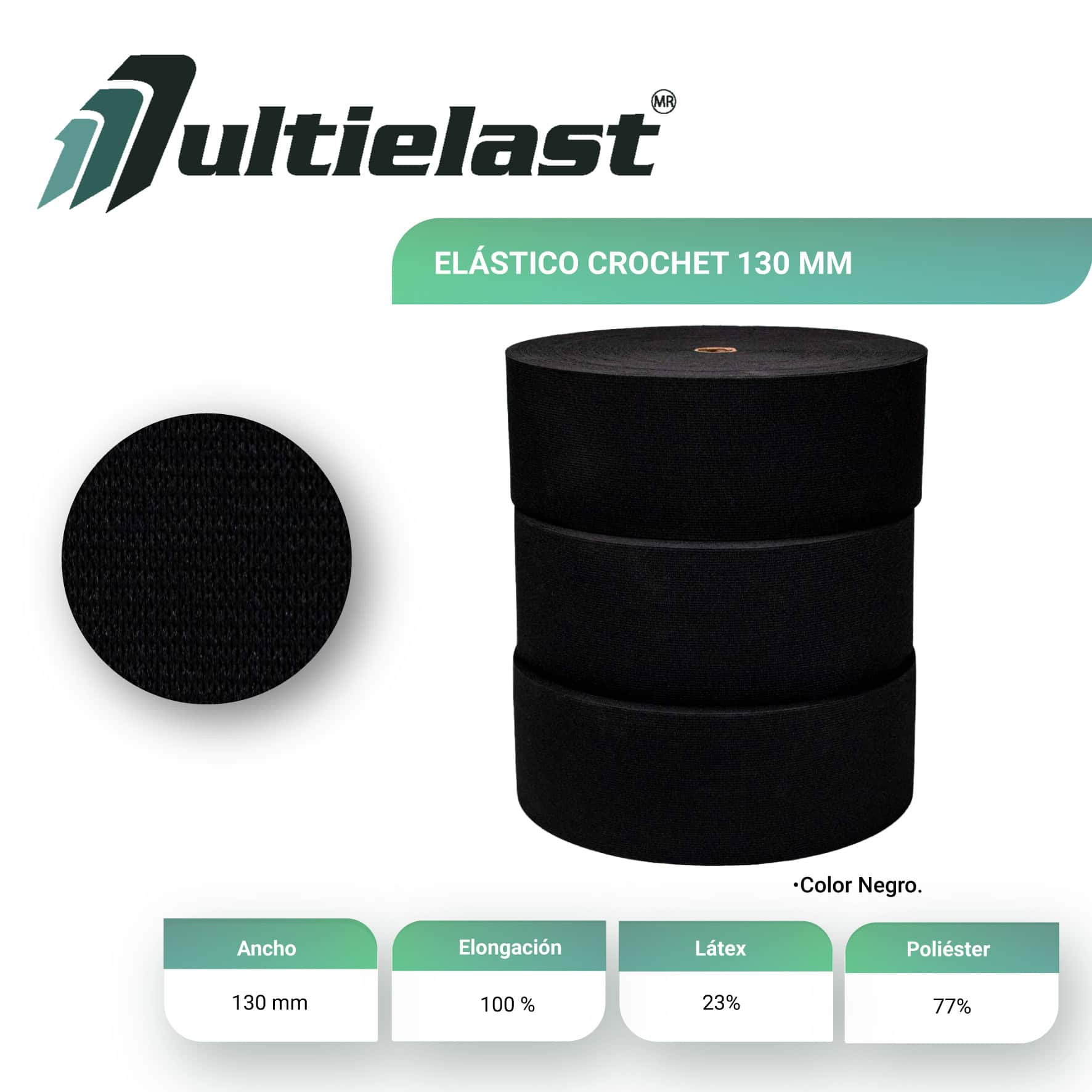 De Elásticos crochet negro 130 mm somos Fabricante y Distribuidor
