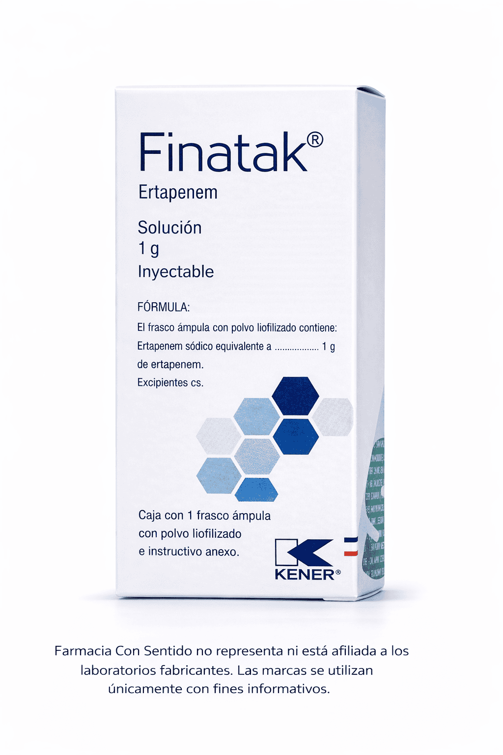 El ertapenem es un medicamento de alta especialidad utilizado dentro del manejo hospitalario de infecciones bacterianas que requieren tratamiento específico, siempre bajo indicación y supervisión médica especializada. Su uso forma parte de esquemas terapéuticos definidos conforme al diagnóstico microbiológico, condición clínica del paciente y antecedentes médicos. Se administra en entornos clínicos controlados y bajo vigilancia médica continua. En Farmacia Con Sentido mantenemos un firme compromiso con la calidad y trazabilidad de cada medicamento, brindando acompañamiento cercano, profesional y respetuoso durante todo el proceso de cotización y coordinación de entrega.