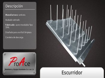 Descripción de Escurrideros - Acero y Equipo Inoxidable PROACE: