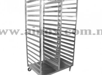 Espiguero doble en Acero Inoxidable para 32 charolas(No incluidas) Fabricado en Acero Inoxidable Cal. 18 Con ruedas de 4″ Medidas 100 x 66 x 180 m Mod CR-32
