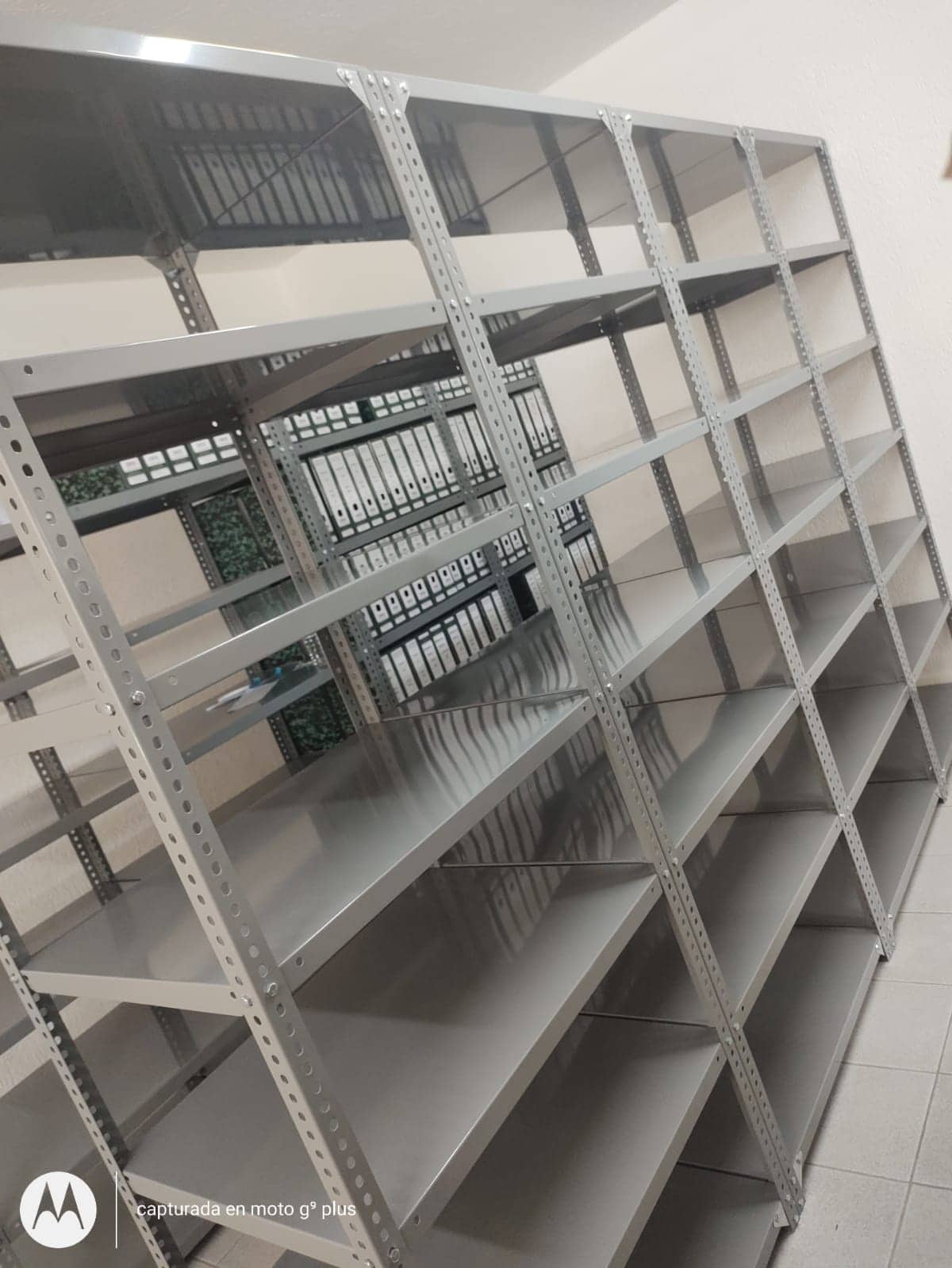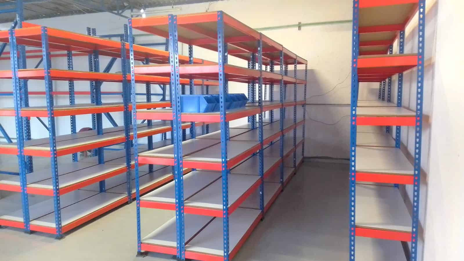 Estantería metálica ligera dese 40 hasta 200 kg por nivel, estantería con tormillerís o sin tornillería, con panel metálico o MDF de 15 mm.