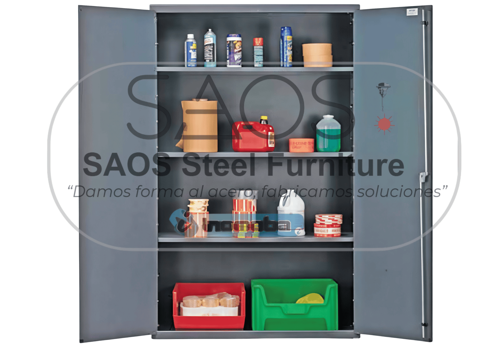 Los gabinetes de puerta al ras ofrecen una mejor organización, más espacio y mayor seguridad de almacenamiento para piezas, insumos y herramienta de alto valor, fabricados en lámina de acero al carbón calibre 14 ASTM tensonivelada totalmente soldado, acabado en aplicación de pintura en polvo horneada lo que garantiza años de servicio pesado y protección a la corrosión y humedad, chapa con 3 puntos de sujeción con 2 llaves y bisagras de piano calibre 14 soldadas a las puertas para mayor resistencia y durabilidad. Optimice sus espacios de almacenamiento utilizando sus paneles ranurados para recibir contenedores plásticos colgantes de almacenamiento.