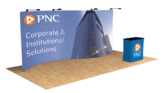 Cree un impresionante telón de fondo para la cabina de exhibición con tela Serpentine 20 elástica de alta calidad.