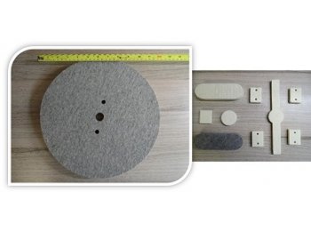 Fieltros según norma ASTM cortados a la medida en materiales como lana, poliéster y polipropileno. Fabricación de discos a la medida de materiales suaves, según sus necesidades de forma y cantidad.
