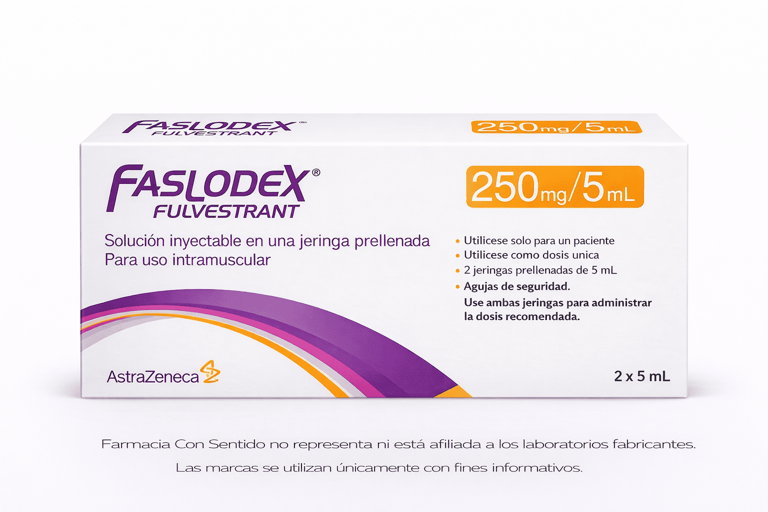 El fulvestrant es un medicamento de alta especialidad utilizado dentro de esquemas terapéuticos oncológicos hormonales, siempre bajo indicación y supervisión médica especializada. Su administración forma parte de protocolos individualizados definidos por el médico tratante, considerando el diagnóstico, estadio de la enfermedad y características clínicas del paciente. Se utiliza en entornos clínicos controlados y requiere seguimiento médico periódico. En Farmacia Con Sentido mantenemos un firme compromiso con la calidad y trazabilidad de cada medicamento, brindando acompañamiento cercano, profesional y respetuoso durante todo el proceso de cotización y coordinación de entrega.