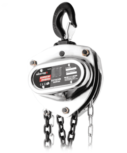 Cadena de carga pavonada grado 80 para mayor durabilidad Gancho de acero forjado giratorio de 360° para un fácil manejo Fabricada en acero para mayor resistente al impacto y durabilidad Doble trinquete con doble guía de rodillos para un mejor desempeño, seguridad y confianza Factor de seguridad 6:1