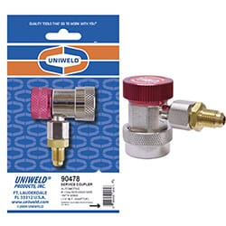 Adaptador alta manual automotriz R134a (ROJO/ ALTA) M14*1.5 con 1/4” M.F.