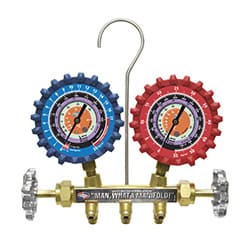 Manómetro de latón de 2 vlv R410A/ R22A/ R404A LFP (psi-kg/cm²°C) incluye manguera de 3’ ft.