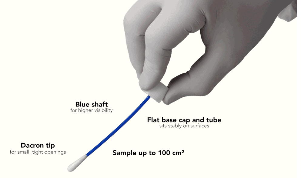 Hisopos para monitoreo ambiental y recolección de muestras en superficies para su posterior análisis microbiológico de microorganismos indicadores como Mesóflos aerobios, Coliformes totales y E.coli, Enterobacterias, Hongos y Levaduras, bacterias como Salmonella, Listeria monocytogenes, E.coliO157:H7, Pseudomonas y muchos más. Elaborados con los materiales de mayor calidad, punta de dacrón, buffer HICAP de alta capacidad de neutralización 100% compatible con placas de filmes
