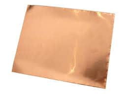 Láminas de cobre o también denominadas pletinas de cobre. Son de color rojizo y brillo metálico. Se caracterizan por una excelente conductividad eléctrica y térmica. Es un material blando, dúctil (cambia de forma por presión) y maleable (puede descomponerse en planchas delgadas).