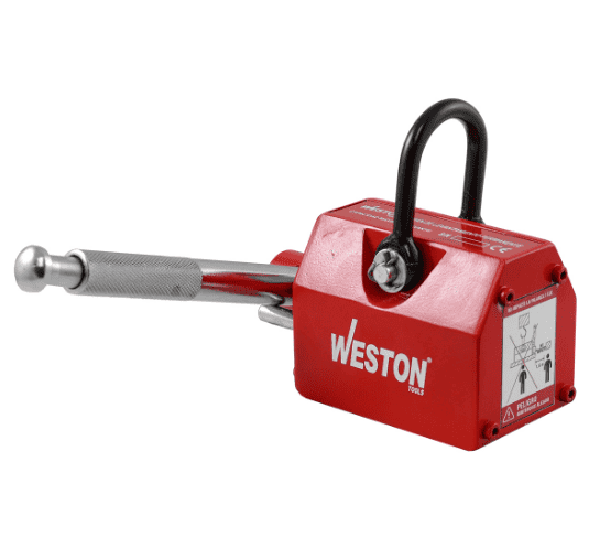 Fácil operación y manejo Fuerza magnética controlada al girar la palanca manual Cuenta con un grillete firme en la parte superior Usado en fábricas, puertos, bodegas e industria del transporte Temperatura de uso: -40°C<80°C