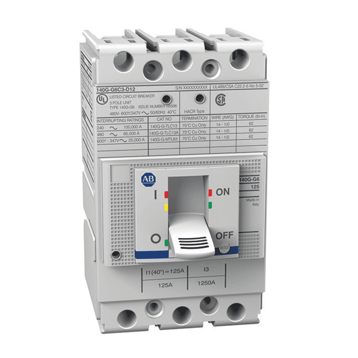 Interruptores de marcas ABB y Allen Bradley, manuales y automáticos, electromagnéticos y termomagnéticos, en caja moldeada de diferente capacidad de amperaje y de diferente capacidad interruptiva.