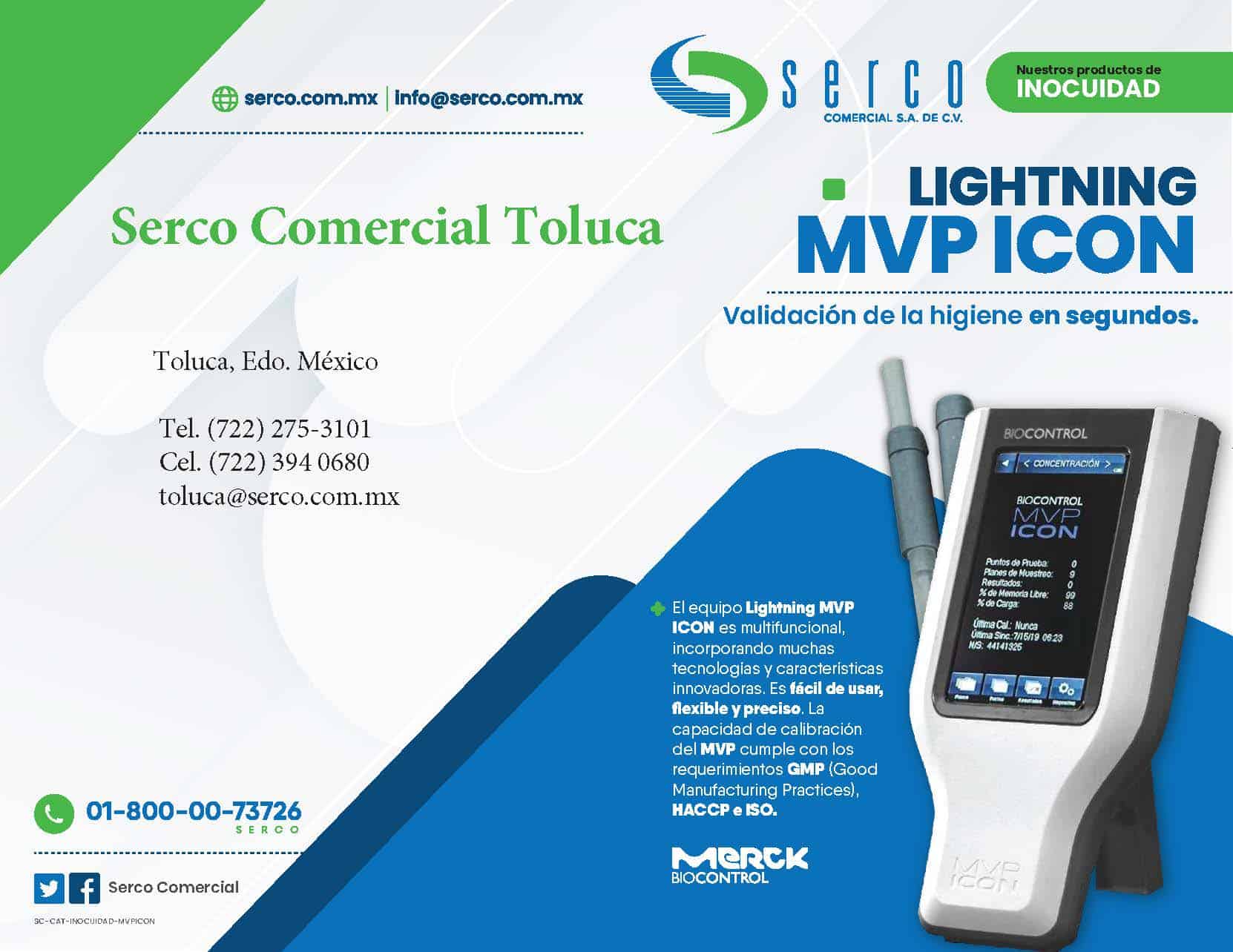 En Serco Comercial ofrecemos Luminómetros de la marca BioControl Systems: la siguiente generación de equipos de bioluminiscencia: El Nuevo MVP ICON. Un equipo poderoso, sencillo de operar y liviano que ofrece una interface muy fácil de usar con una pantalla sensible al tacto; además un poderoso software en forma de tablero de información que permite combinar HACCP, el monitoreo de la higiene y la gestión de la información en una sola plataforma.