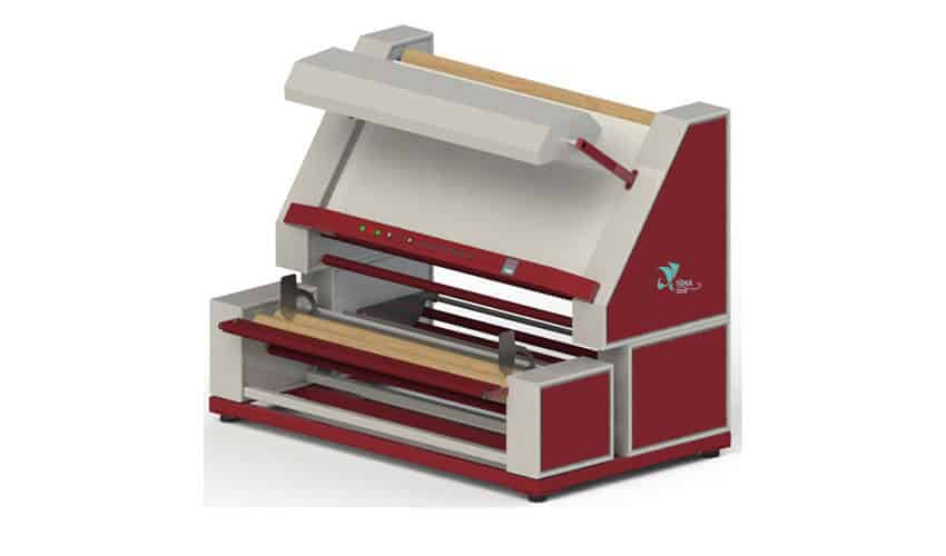 Bordeado liso con fotocélula de borde, Envoltura de tela tejida y pastel, Deténgase en el acabado de la tela con un cuadro de fotos al final de la tela.