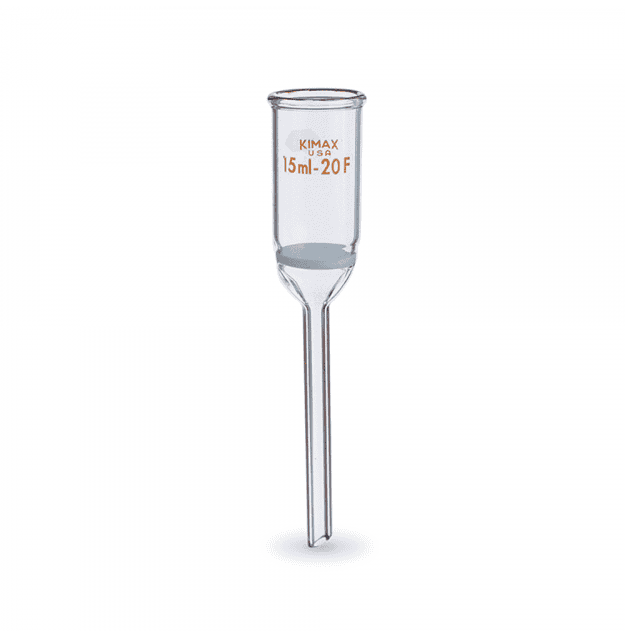 Embudo tipo Buchner en vidrio de borosilicato con disco poroso, se utiliza cuando el papel filtro y las membranas no pueden soportar el ataque químico del filtrado. Con disco poroso KIMFLOW de diferentes porosidades, pared gruesa y uniforme, bordes moldeados, alta resistencia al ataque químico, al choque mecánico o térmico.