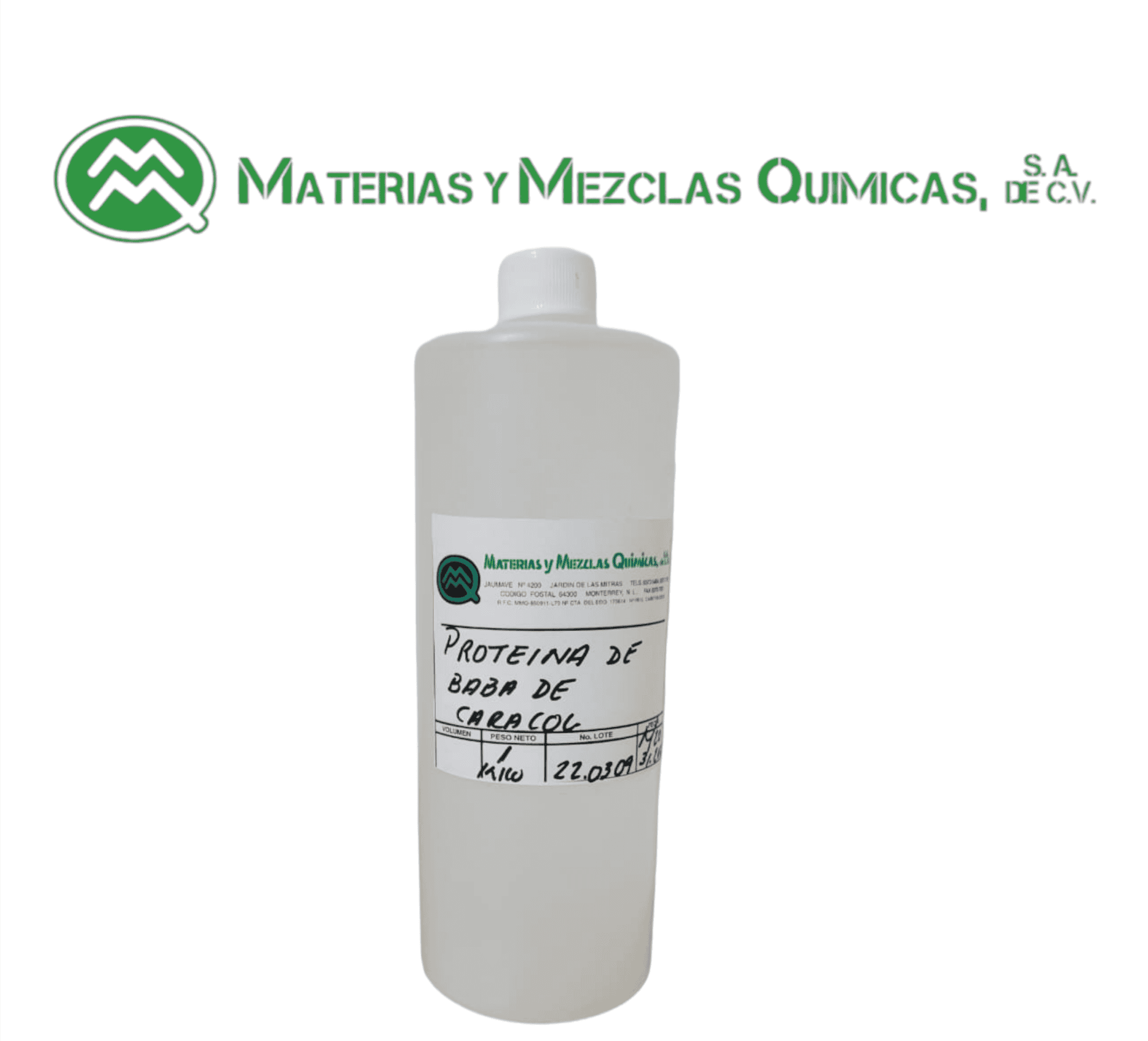 Proteína de baba de caracol (Filtrado de la secreción del caracol) obtenido a través de métodos directos, la baba del caracol se recupera por medio de un complejo y cuidadoso proceso que permite obtener un fluido puro, libre de contaminaciones, biológicamente activo y que preserva la vida de el animal. Este procedimiento se lleva a cabo bajo normas controladas de laboratorio que permiten estimular una cantidad considerable de secreción glandular, que se extrae por numerosos lavados de agua purificada y posterior filtración. La secreción del Filtrado de la secreción del caracol posee la capacidad de aportar los elementos y restaurar algunos de los procesos bioquímicos, estructurales y funcionales que se han alterado como consecuencia de la exposición de la piel a agresiones externas, como sucede en radiodermitis y fotoenvejecimiento cutáneo. LA BABA DE CARACOL repara y mantiene la integridad cutánea de las pieles • Facilita la migración de queratinocitos para reparar la alterada dinámica epidérmica. • Restaura la función barrera dérmica. • Evita el enrojecimiento y la irritación cutánea observada en pacientes en tratamientos con retinoides. Hecho clínicamente demostrado al observarse disminución del eritema causado por una agresión cutánea, tras la aplicación.