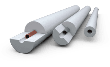 Las medias cañas son cubiertas cortadas de EPS de altas densidades, resisten humedad y no generan hongos ni bacterias, tienen gran capacidad termoaislante y buenas propiedades mecánicas. Su largo estándar es de 1.22 m. Al realizar su pedido, se requieren dos medidas: diámetro nominal del tubo y espesor de aislamiento. Para recomendarle la media caña adecuada para su proyecto es necesario especificar si su tubería es de cobre, fierro o PVC.
