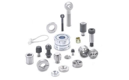 Este grupo incluye tornillos de ojo, tornillos con resalto, pernos de pivote, así como tornillos de punta redon-deada, tuercas y arandelas, elementos de posicionamiento, almohadillas de sujeción y juegos de nivelación. Es-te grupo de piezas estándar también incluye collarines para ejes, tuercas y pernos para tuercas en T y cables de retención.