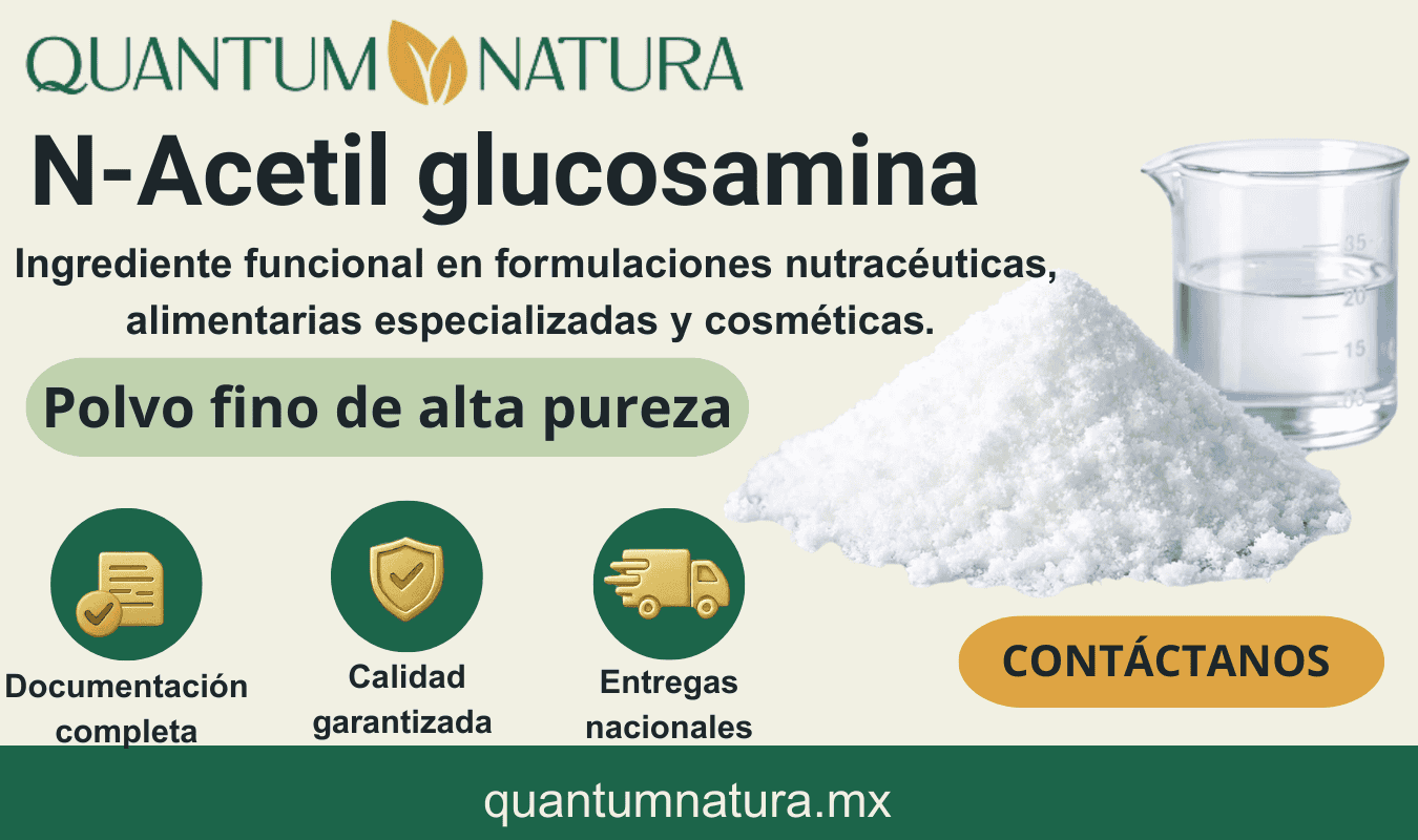 Es un derivado acetilado de la glucosamina, ampliamente utilizado como ingrediente funcional en suplementos alimenticios, nutracéuticos, alimentos especializados y cosmética activa.