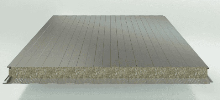 Es un panel sándwich utilizado para paredes de edificios industriales, salas de proceso, espacios interiores.
